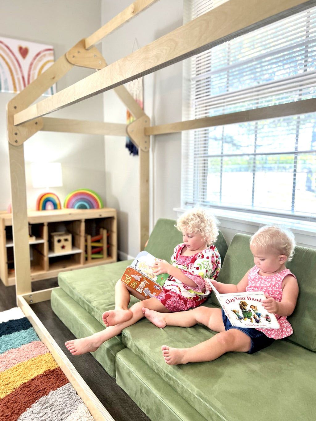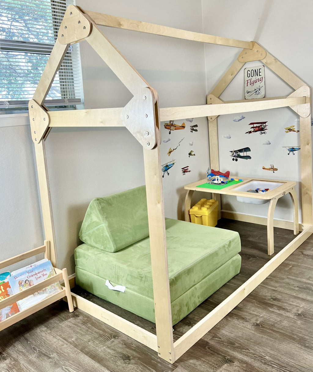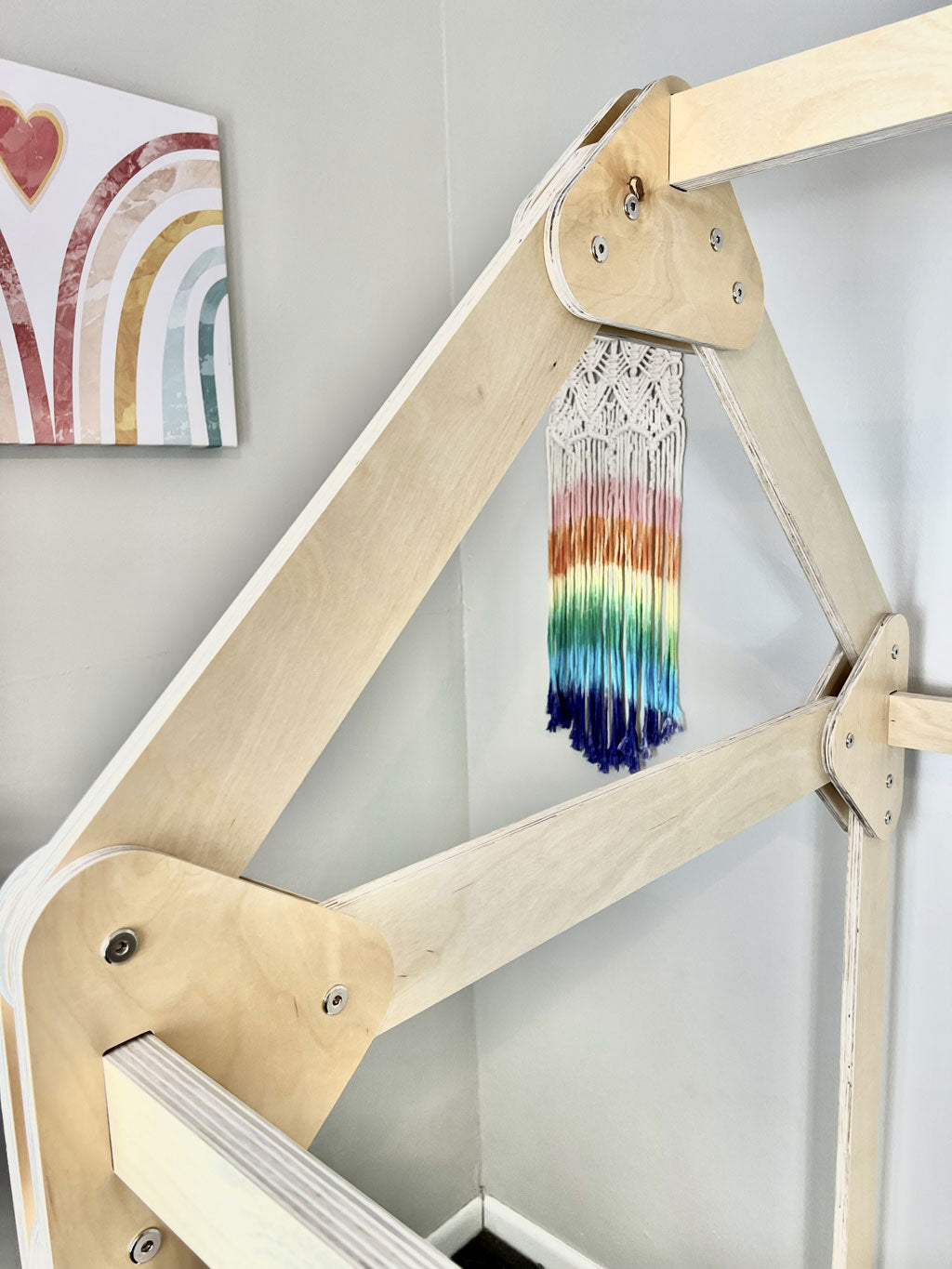 Our House Bed frame will encourage your child's imagination and confidence. The House Bed also makes for a great play space. The bed frame is built strong so hanging out in a hammock makes for a great reading spot. Add a couple of silk sheets or blankets and you have a fort to let their imagination run.