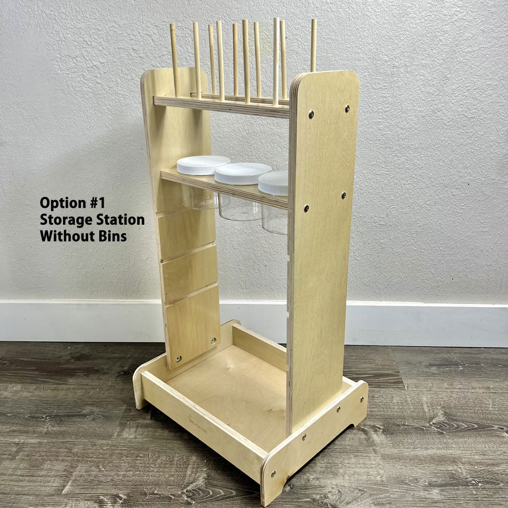 Like all our products the Storage Station is made by us, using the highest quality furniture grade Birchwood. The station is finished with the same durable easy-to-clean finish as our sensory table and chairs. And is a perfect match for our Sensory Table and Chair Set and will organize any sensory play area.
